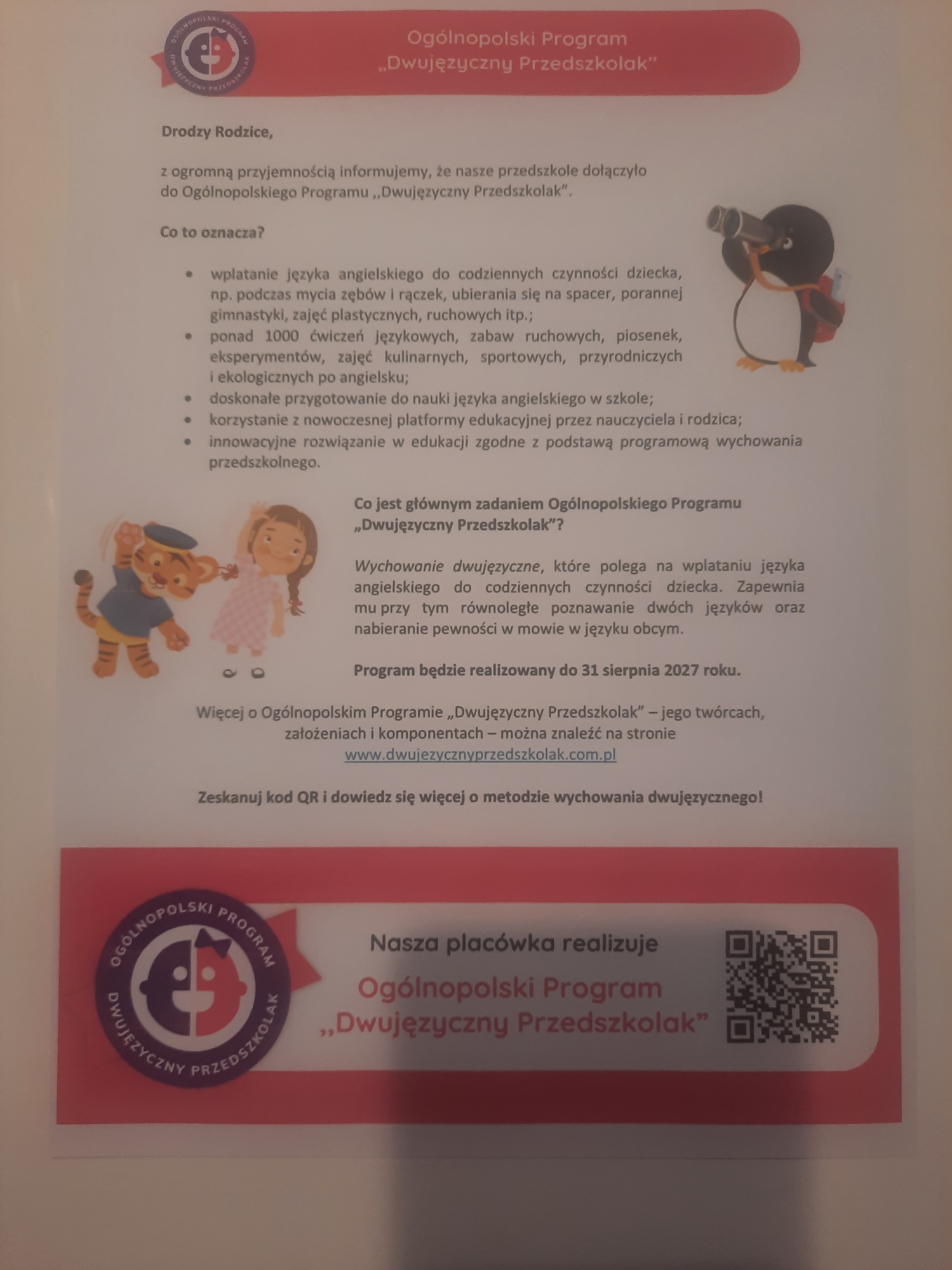 i poszerzenia horyzontów kulturowych dzieci. Dzieci, które mają kontakt z dwoma językami od najmłodszych lat mają szansę na wyprzedzenie rówieśników w rozwoju. Mają lepiej rozwinięte struktury języka, co wpływa na cały proces ich kształcenia. To wszystko oddziałuje pozytywnie na ich sprawność w procesach twórczych i umiejętnościach matematycznych. Osoby dwujęzyczne szybciej uczą się pisać i czytać, lepiej radzą sobie w szkole, łatwo uczą się kolejnych języków, nie mają bariery językowej, są twórcze i bez problemów korzystają z obu języków równolegle.SERDECZNIE ZAPRASZAMY DO UDZIAŁU