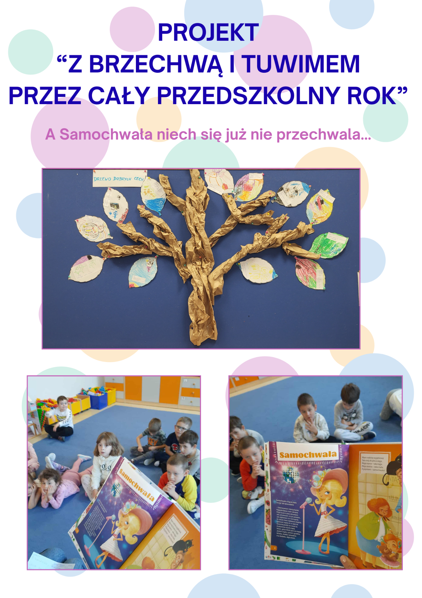 Niech w Waszych serduszkach zawsze gości!      - Zapracowane "Pszczółki" dziękują Radzie Rodziców za pyszną watę cukrową :)   - Obchody Dnia Pszczoły w grupie "Pszczółki".    - Zajęcia przyrodnicze w grupie Pszczółek - wiosenny spacer i wspólne malowanie paluszkami.   - 8 maja obchodziliśmy Dzień Bibliotekarza. Dzieci z grupy "Pszczółki" odwiedziły szkolną bibliotekę. Wysłuchały audiobook'a o Misiu Tymoteuszu Rymcimci, w którym poruszone są tematy bliskie dzieciom, takie jak pragnienie posiadania przyjaciela. Następnie wykonały pracę plastyczną, której tematem był miś.  - Przedszkolaki z grupy Pszczółki przygotowują się do obchodów świąt majowych.  - Grupa Pszczółki poznaje świat baśni - historię Kota w Butach.  - Przedszkolaki z grupy Pszczółki przygotowują ozdoby wielkanocne.   - Pszczółki w akcji eko! 🌍 W tym tygodniu bawiliśmy się w zabawy ruchowe nawiązujące do ekologii i tworzyliśmy ekologiczne drzewa z papieru. 🌱 Uczyliśmy się, jak dbać o naszą planetę i jednocześnie dobrze się bawić!     - Dzień Świadomości Autyzmu - 2 kwietnia obchodziliśmy Światowy Dzień Świadomości Autyzmu. Ideą tego dnia jest wyrażenie wsparcia i przypomnienie jak ważne są akceptacja i zrozumienie osób w spektrum autyzmu.  - W tym tygodniu przedszkolaki z grupy "Pszczółki" poznają uroki życia na wsi. Wspólnie pokolorowały planszę edukacyjną o zwierzętach mieszkających w gospodarstwie.    - Rozstrzygnięcie konkursu - Oto wyniki konkursu na najpiękniejsze przebranie z okazji Dnia Świętego Patryka: - Pola i Emilka z grupy "Pszczółki" zdobyły wyróżnienie. - Serdecznie gratulujemy!    - W dniu 25.03 grupa Pszczółki wzięła udział w zajęciach w bibliotece szkolnej. Tematem były 220 urodziny pisarza Hansa Christiana Andersena. Dzieci zaśpiewały solenizantowi "100 lat", uczestniczyły w ciekawej prelekcji oraz obejrzały animowaną interpretację baśni "Dzikie Łabędzie".  - W tym tygodniu dzieci z grupy Pszczółki poznają życie na morzu - jak wyglądają oraz jakie są rodzaje statków, dlaczego sztorm jest bardzo niebezpieczny i co sprawia, że przedmioty unoszą się na wodzie. Porcji wiedzy towarzyszy również dobra zabawa.  - Dzień Kolorowej Skarpetki - 21 marca w grupie "Pszczółek" obchodziliśmy Dzień Kolorowej Skarpetki. Kolorowe skarpetki nie do pary to symbol solidarności z osobami z Zespołem Downa.   - Powitanie wiosny - spacer z gaikiem - W dniu 21 marca (piątek) wszystkie dzieci z oddziałów przedszkolnych wzięły udział w tradycyjnym obrzędzie pożegnania zimy. Powitaliśmy wiosnę kolorowymi gaikami. Towarzyszyła nam piękna pogoda.  - 20 marca obchodziliśmy Dzień Żaby. Dzieci obejrzały film edukacyjny, z którego dowiedziały się wielu ciekawostek na temat żab. Pszczółki już wiedzą, że żaby to płazy, które są pod ochroną. Żaby świetnie pływają, nurkują i skaczą.   - Dzień Świętego Patryka - 14 marca 2025 roku (w piątek) w grupie "Pszczółek" obchodziliśmy Dzień Świętego Patryka. Dzieci obejrzały prezentację multimedialną, z której dowiedziały się kim był święty Patryk oraz poznały symbole, które są związane z Irlandią. Dzieci przyszły ubrane na zielono. Pszczółki przymierzały zielony kapelusz irlandzkiego skrzata a także pozowały do zdjęć w koniczynkowej ramce. W tym dniu odbył się konkurs plastyczny dla dzieci z wszystkich oddziałów przedszkolnych oraz konkurs na najładniejsze przebranie. Wybraliśmy się także do szkoły, gdzie dzieci obejrzały wystawę prac konkursowych oraz wykonaliśmy zdjęcie w fotobudce.         - Tydzień Integracji Sensorycznej - 10 marca 2025 roku rozpoczęliśmy "Tydzień Integracji Sensorycznej". - PONIEDZIAŁEK - "Orientuj się w schemacie swojego ciała". Rozwijanie orientacji w schemacie ciała oraz poprawa świadomości własnego ciała.      - WTOREK - Zabawy logopedyczne. Gimnastyka buzi i języka, rozwijanie umiejętności komunikacyjnych, zabawy z piórkami oraz bibułą.      - ŚRODA - Zabawy masami plastycznymi. - Rozwijanie zmysłu dotyku oraz tworzenie różnorodnych, kolorowych mas plastycznych m.in. masy solnej i ciastoliny. Wykonanie eksperymentu "Wulkan".         - CZWARTEK - "Powąchaj i posmakuj" - Dzieci w czasie zajęć degustowały, porównywały smaki owoców oraz wąchały przyprawy.        - PIĄTEK - Dzieci rozpoznawały dźwięki instrumentów muzycznych takich jak: fortepian, trąbka, perkusja i skrzypce. Grały na różnych instrumentach m.in. grzechotkach, bębenku, kołatkach. Dzieliły nazwy instrumentów na sylaby oraz zgadywały po głosie imię koleżanki lub kolegi ze swojej grupy.      - W ubiegłym tygodniu, dzieci z grupy Pszczółki obchodziły "Dzień Dentysty". Jego celem było zwiększenie świadomości na temat znaczenia profilaktyki stomatologicznej i oswojenie najmłodszych z wizytami u dentysty. W tym dniu przedszkolaki dowiedziały się, dlaczego warto regularnie myć zęby, co szkodzi ich szkliwu oraz jak wygląda wizyta u stomatologa.    - Dzień Kobiet 2025    - Dzieci z grupy Pszczółki poznają piramidę zdrowego żywienia.     - Tłusty Czwartek 2025    - 27 lutego w naszych oddziałach przedszkolnych odbył się bal karnawałowy. Dzieci wzięły udział w wielu zabawach, grach i tańcach. Były pamiątkowe zdjęcia oraz słodki poczęstunek. "Pszczółki" spędziły czas w miłej atmosferze a dzień ten przyniósł im wiele radości.           - 26 lutego obchodziliśmy Dzień Dinozaura        - Dzieci z grupy "Pszczółki" czują karnawałowy klimat: uczą się tańczyć krakowiaka, uczestniczą w balonowym szaleństwie przy okazji poznając literę "B" oraz wykonują ozdoby karnawałowe - korony z origami.        - Dzieci z grupy Pszczółki poznają ciekawostki z mroźnych krain. Wykonały pracę plastyczną w nietypowy sposób - malowały pingwinka ptasimi piórami.    - Dzieci z grupy "Pszczółki" świętują Dzień Kota.    -